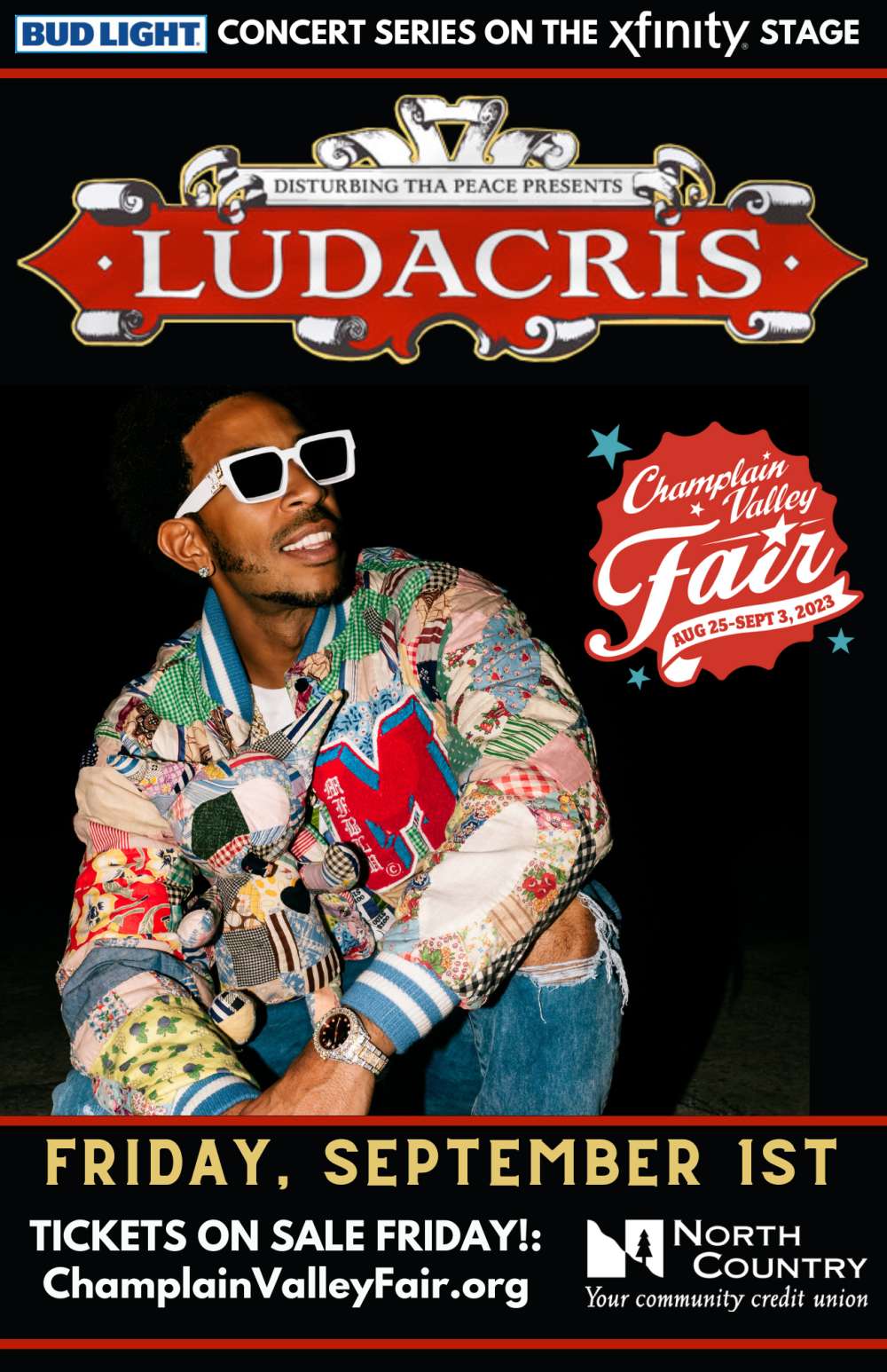 Want to win two tickets to LUDACRIS at the Champlain Valley Fair before anyone can buy them? Click the link below to enter into our giveaway! All you have to do is make sure you're on our e-mail list and are following us on social media!
