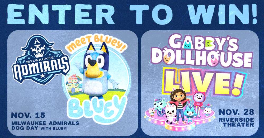 Enter for your chance to win two FREE tickets to the Milwaukee Admirals Dog Day on November 15 at Panther Arena AND Gabby's Dollhouse Live on November 28 at the Riverside Theater.