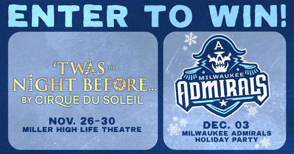 Enter for your chance to win TWO FREE tickets to Cirque du Soleil Twas The Night Before... November 26 at Miller High Life Theatre AND the Milwaukee Admirals Holiday Party December 3 at Panther Arena.