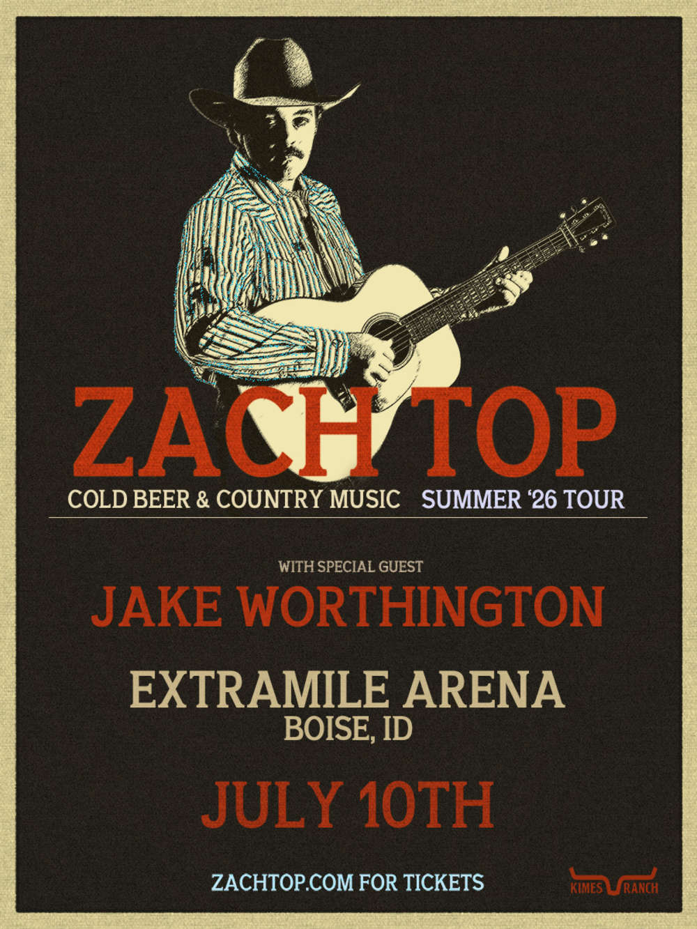 Be among the first to secure tickets to Zach Top's Cold Beer & Country Music Tour 2026 at ExtraMile Arena in Boise on July 10, 2026!