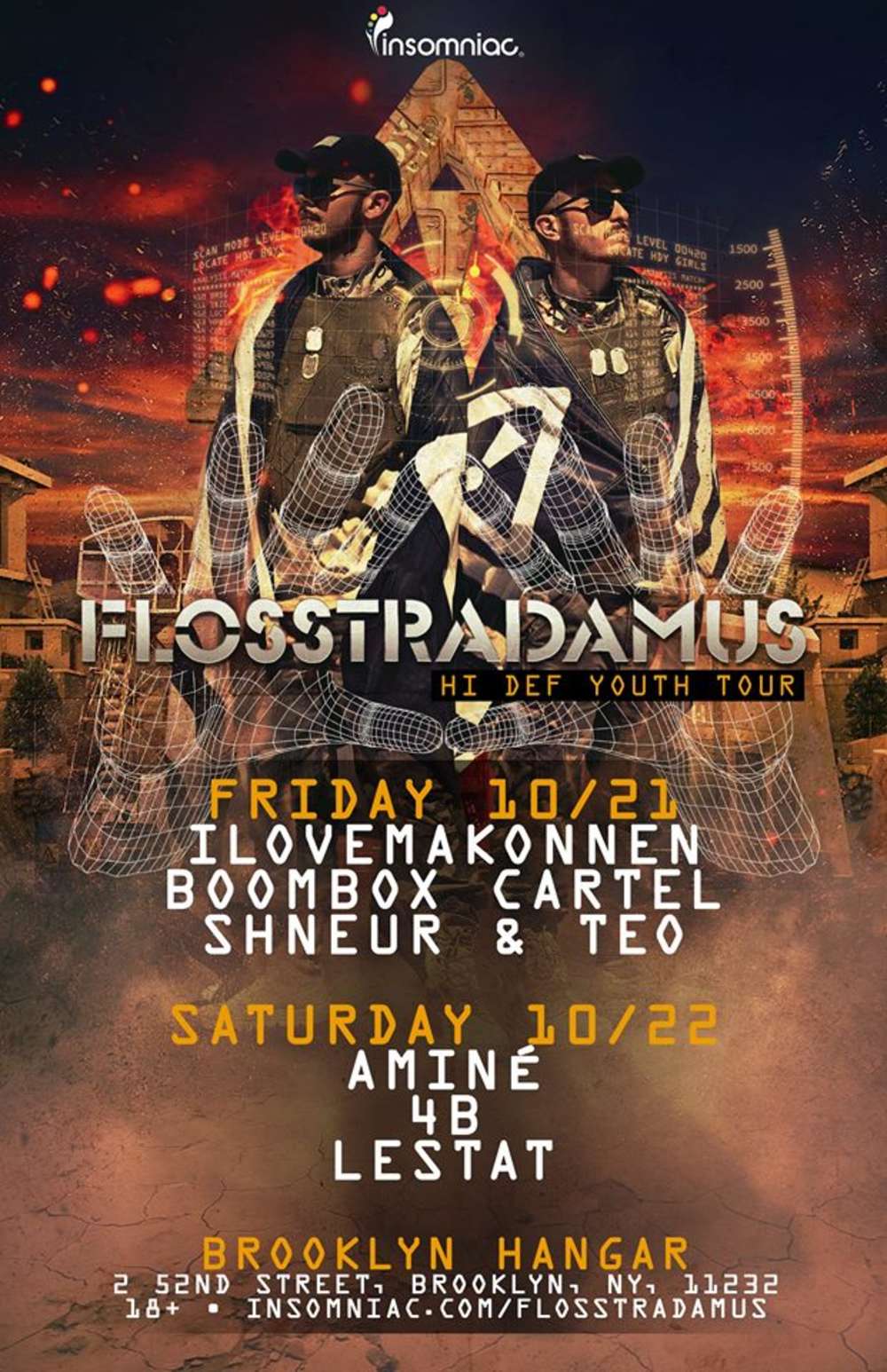 Flosstradamus embark on their massive Hi Def Youth tour in New York this weekend, set for back to back nights headlining the Brooklyn Hangar on Friday, October 21 and Saturday, October 22. Supporting acts across the weekend include ILoveMakonnen, Boombox Cartel, 4B and others. Enter to win tickets to join Flosstradamus as they kick off their run of Hi Def Youth.