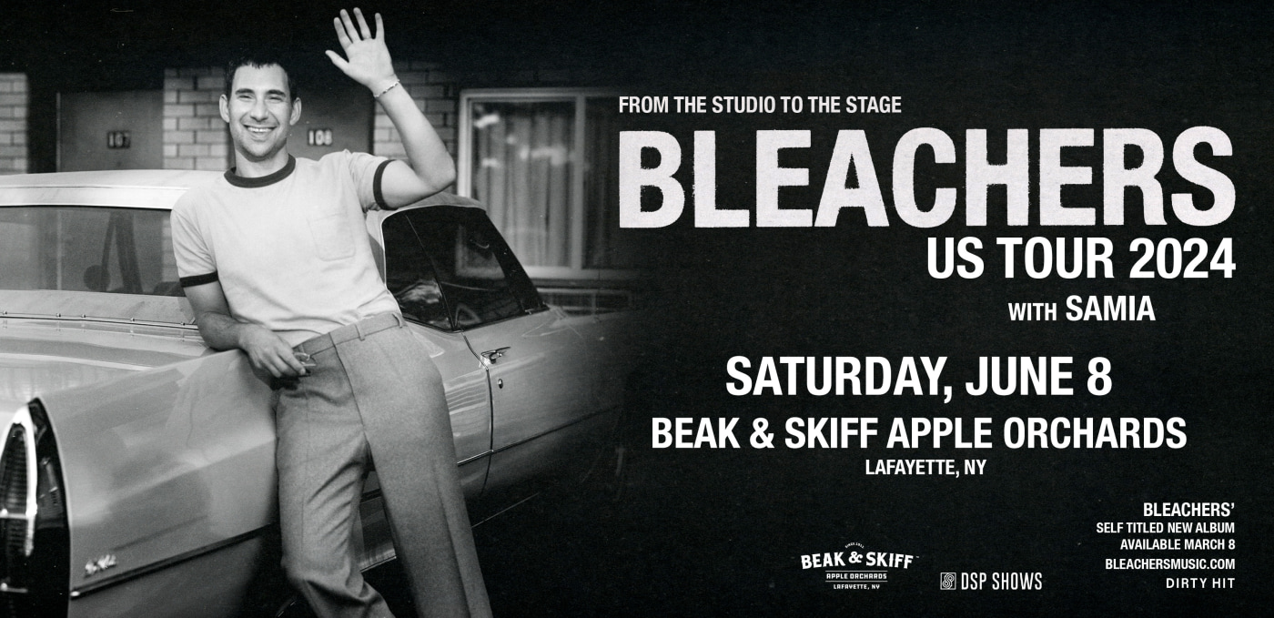 Greetings! We are so excited for you to join us for Bleachers with Samia at Beak & Skiff Apple Orchards in Lafayette, NY TONIGHT, Saturday, June 8. Below, you will find important information about our unique venue. Please read this to ensure that you are aware of our procedures and the timeline for the evening.