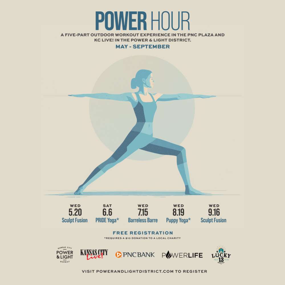 Join us on Wednesday, May 20 for Power Hour, an outdoor Sculpt Fusion class taught by Power Life in the PNC Plaza followed by happy hour!